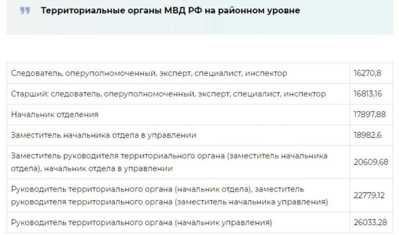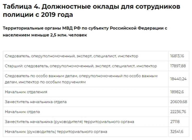 Таблица: заработная плата сотрудников полиции РФ