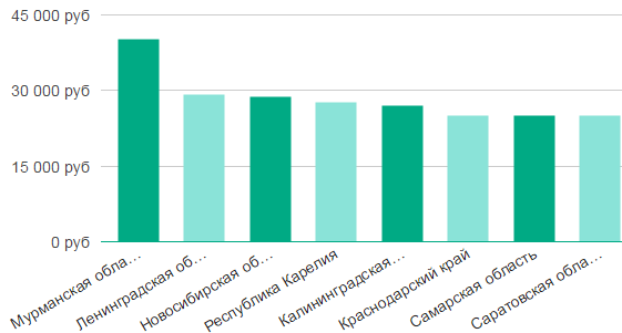 Что касается заработка по российским регионам, то средняя зарплата работников полиции в России составляет 40 000 рублей. Выше всего она на Камчатке, около 73 500 рублей. Дальше по стране зарплата полицейских распределяется таким образом: