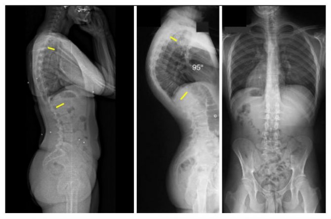 Обратите внимание на то, как выглядит кифоз на рентгене