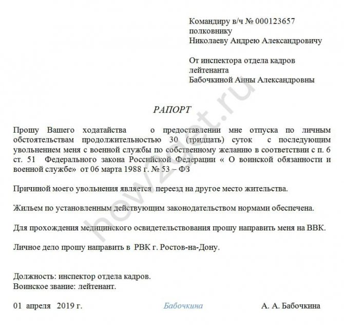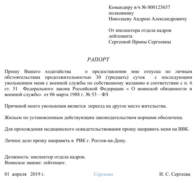 Образец рапорта на «президентский» отпуск военнослужащего (дембельский)