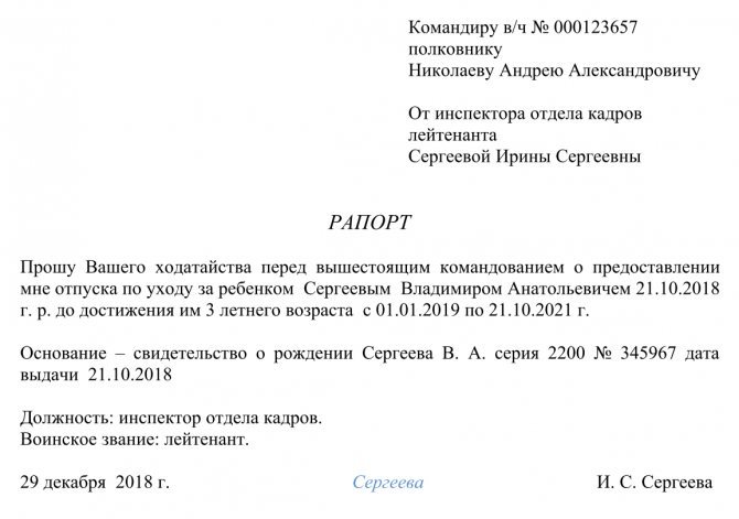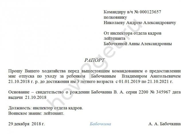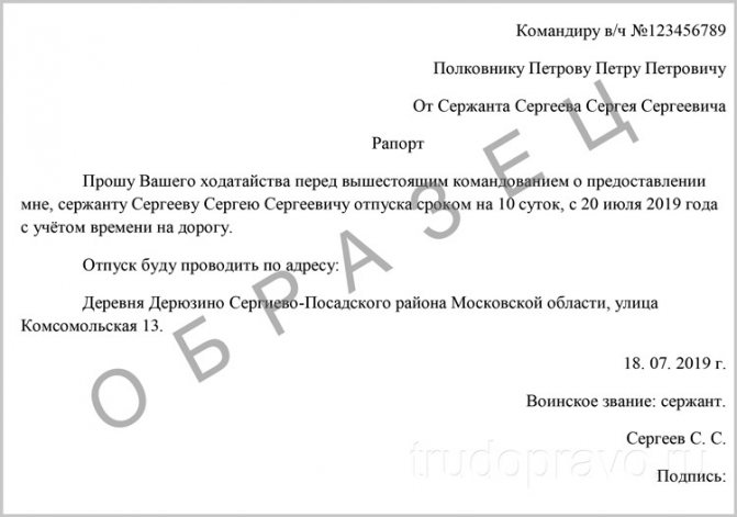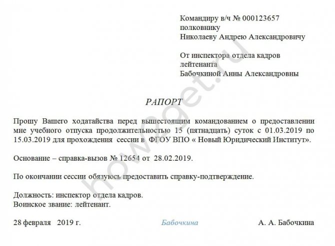 Пример, как писать рапорт на учебный отпуск военнослужащему