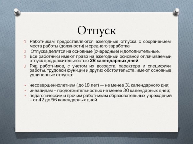 За все время, пока человека нет на рабочем месте, ему все равно платят. Если у сотрудника особенная должность, он прекрасный профессионал либо преподаватель, живет на Крайнем Севере либо приравненных к нему территориях, то количество дней в этот период прибавляется.