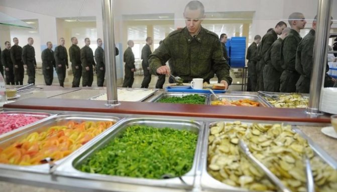 Прием пищи в армии осуществляется строго по распорядку дня 3 раза в день, при этом ежедневно в одно и то же время. Правильное питание – залог здоровья!