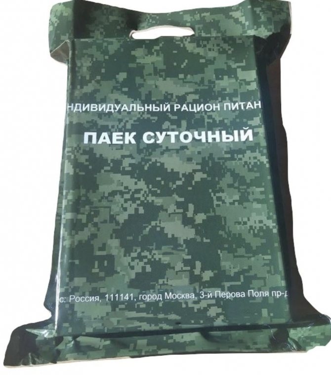 Период службы солдат российской армии, как правило, проходит не только внутри войсковой части. Часто организовываются учения с выездом за пределы гарнизона, в т.ч. не на один день. Соответственно прием пищи военнослужащими осуществляется в полевых условиях. Поэтому при проведении подобных мероприятий в рацион питания солдат срочной службы армии России обязательно входит сухой паек.